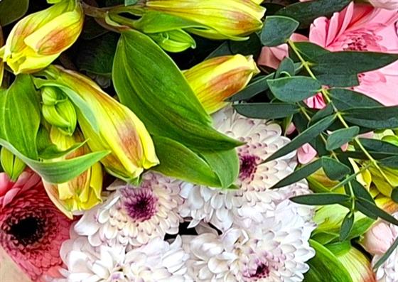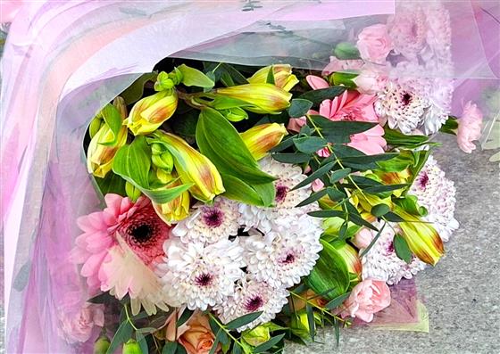Our Mothers day Just beautiful Blooms will be wrapped tissue paper and cellophane, a simple but beautiful bunch of flowers that is a joy to receive.