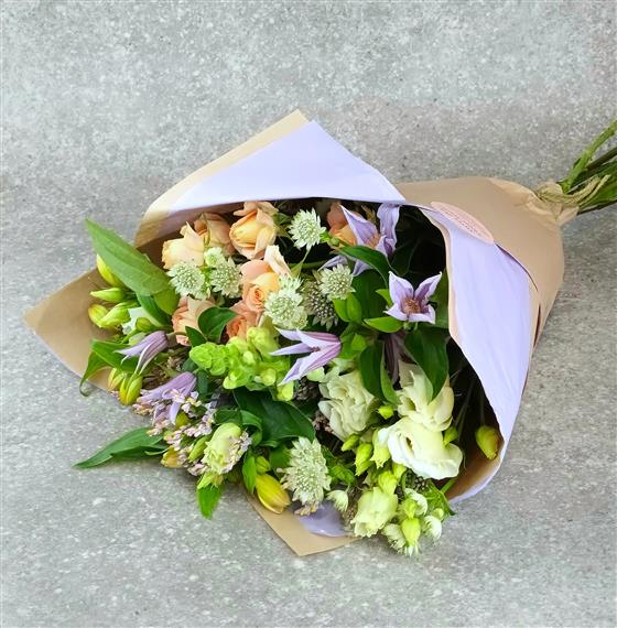 This fresh flower bouquet we have created with our own loving hands showcases natural charm in every stem. Order bouquets and arrangements online with ease, telephone or visit our shop in person if you are local, where every flower is crafted with attention to detail.