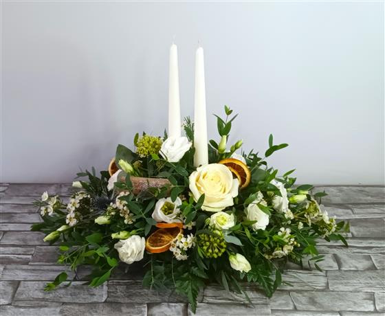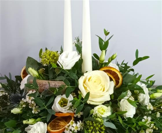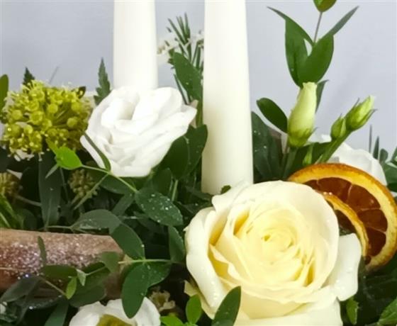 Fresh flower arrangements will become drier the older they are please do not light the candle if you notice any flower of foliage is drying out as this is a fire hazard.